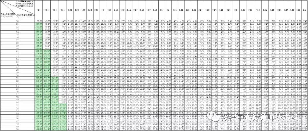 表中標(biāo)綠部分為外線負(fù)載率超過100%的情況(不可能實(shí)現(xiàn)的情形),在該情況下,直接選擇一般工商業(yè)電價(jià)即可。