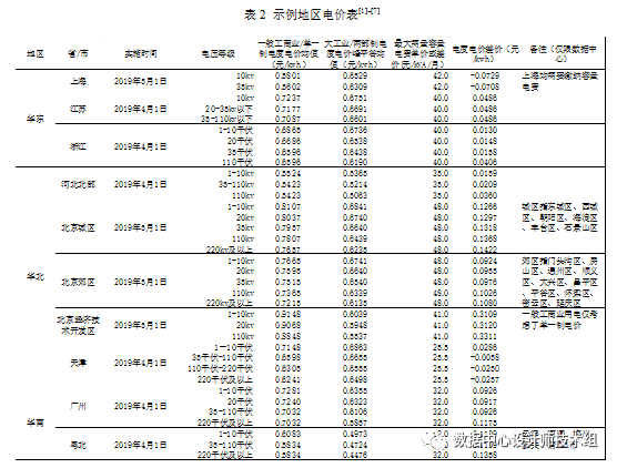 結(jié)合華東(上海、江蘇、浙江)、華北(河北北部地區(qū)、北京、天津)、華南(廣東地區(qū))幾個(gè)主要經(jīng)濟(jì)發(fā)達(dá)區(qū)域,看一下本函數(shù)表的使用價(jià)值。表2為以上主要地區(qū)的電價(jià)表,電價(jià)數(shù)據(jù)來自于參考文獻(xiàn)所列各地發(fā)改委、物價(jià)局及電力公司相關(guān)文件。